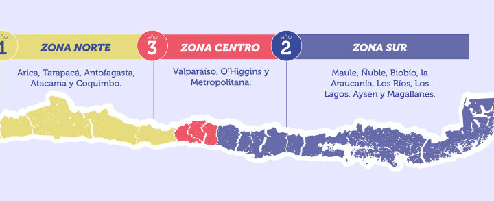 Durante el año 2025 se sumará la macro zona sur, que contempla las regiones del Maule, Ñuble, Biobío, La Araucanía, Los Ríos, Los Lagos, Aysén y Magallanes.